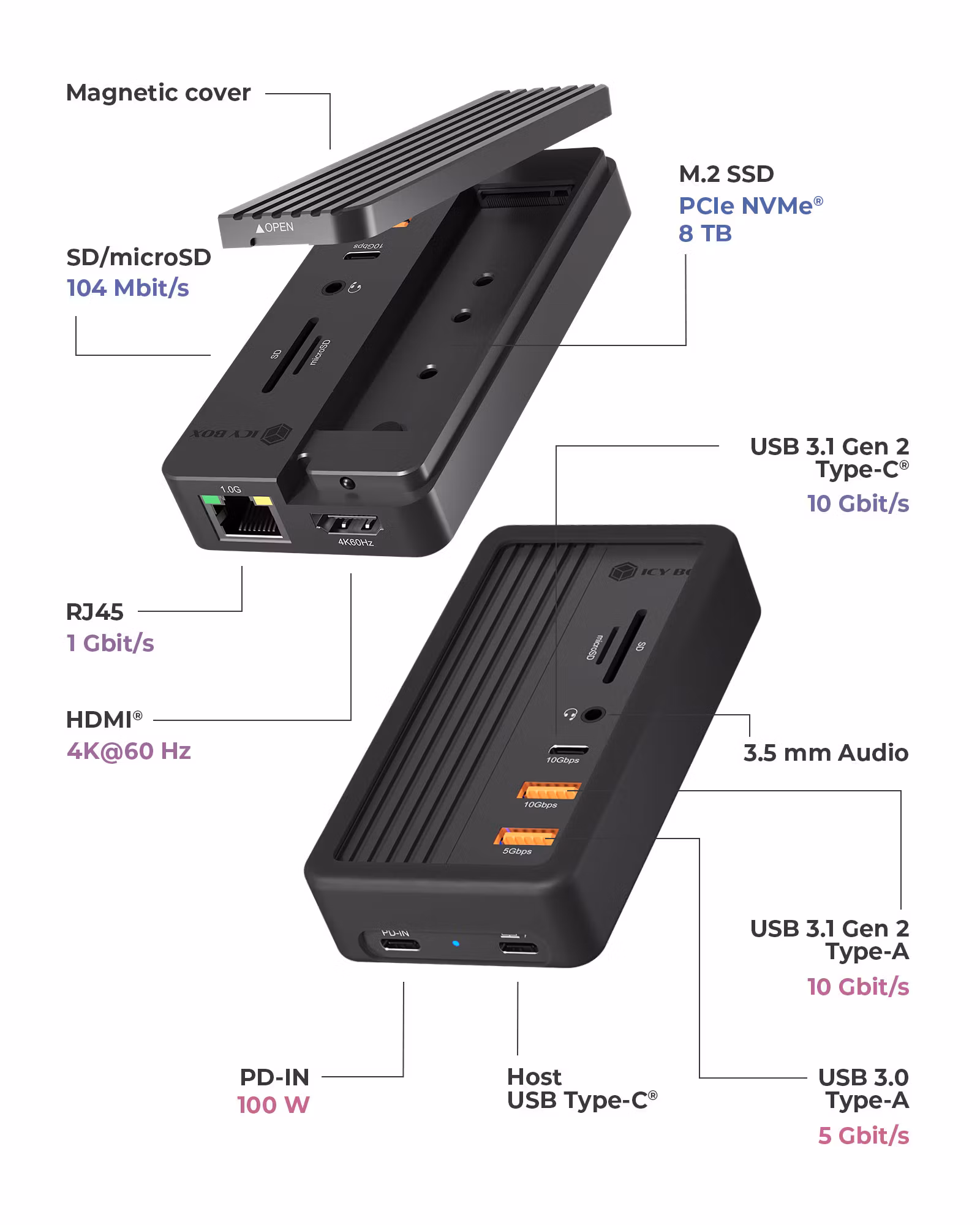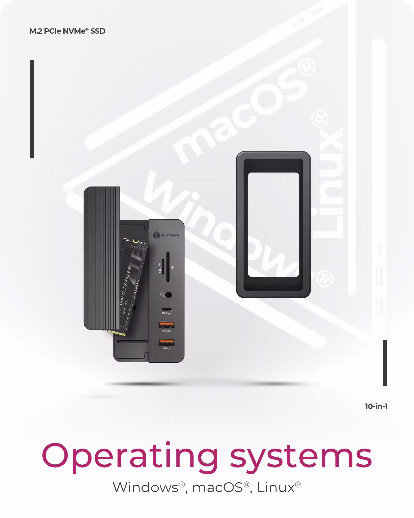 - 10-i-1 dockingstasjon med integrert SSD-kabinett