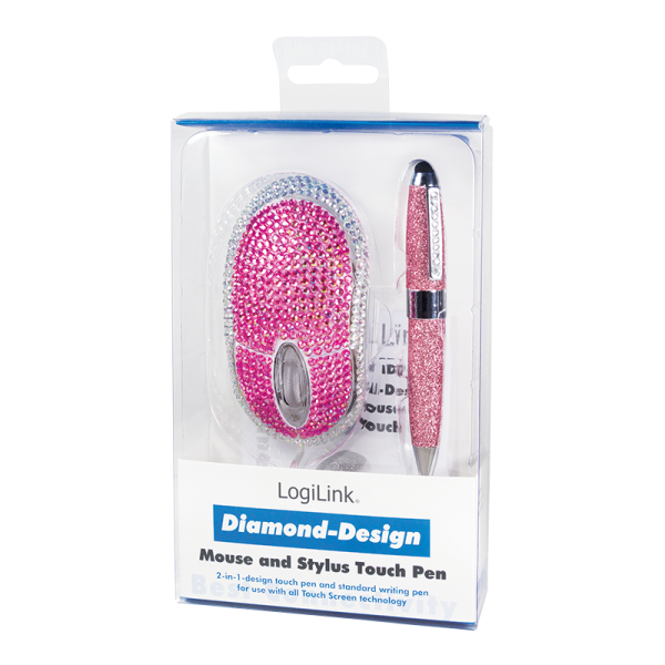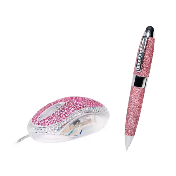 Rhinestone-dekor på mus og glitter på touchpen