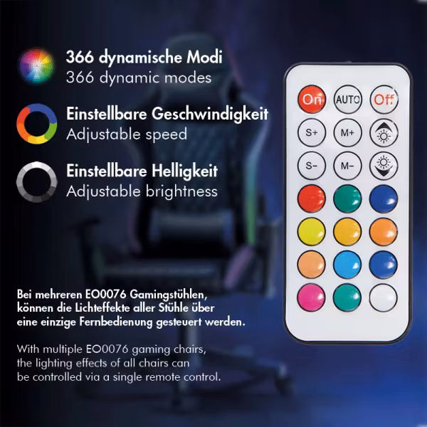 Gamingstol med hode- og korsryggstøtte, RGB-belysning, opptil 150 kg