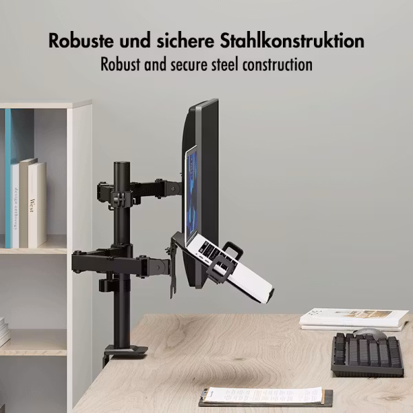 Dobbelt monitor- og laptop-feste – 17–32" monitorer, 12–17" notebook/tablet
