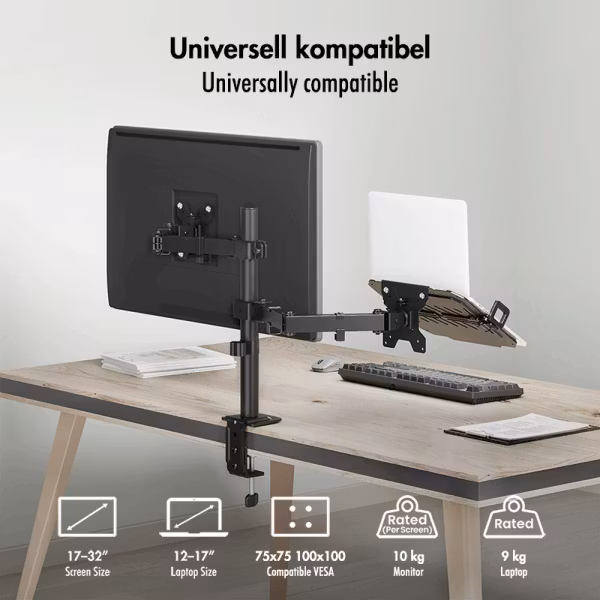 Maksimal belastning: 10 kg (monitor), 9 kg (notebook/tablet)