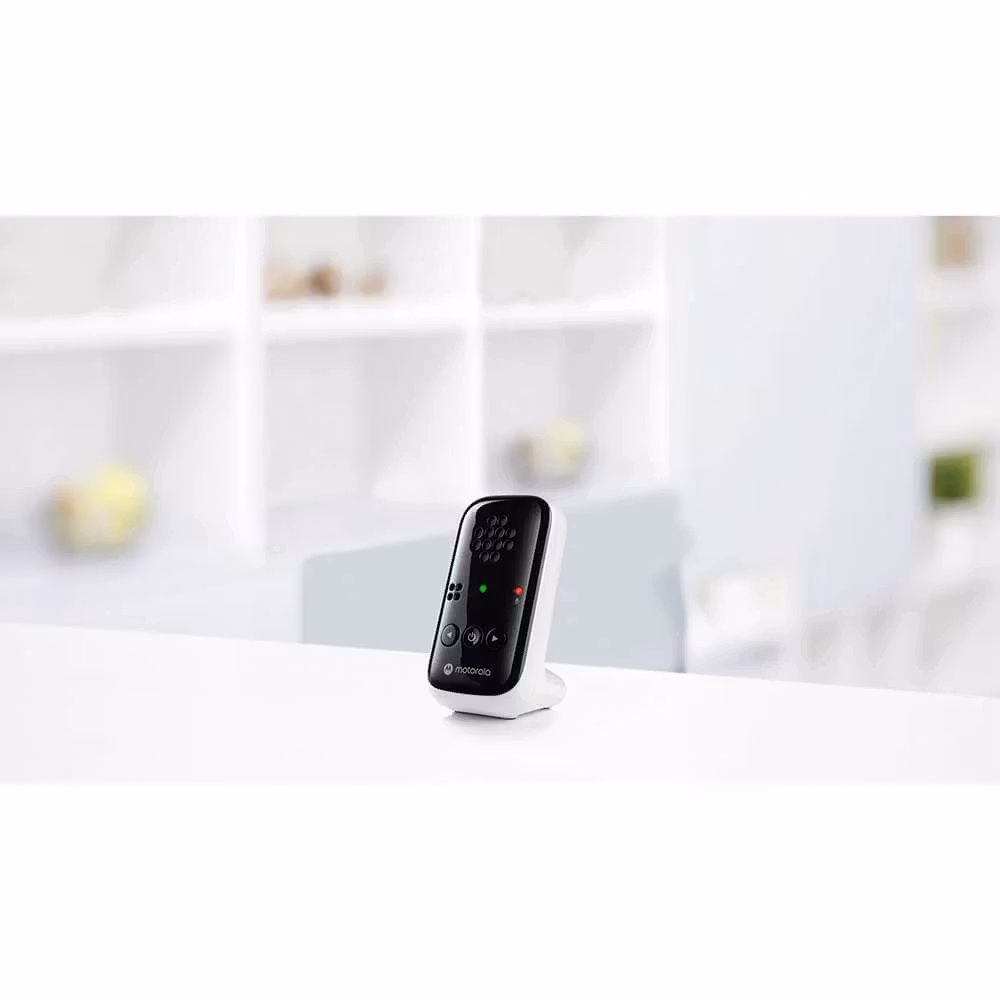 Babymonitor fra Motorola som lar deg alltid holde et øye med barnet ditt, uansett hvor du er i hjemmet. Den har en rekkevidde på opptil 300 meter utendørs og omtrent 50 meter innendørs. Skulle du være utenfor rekkevidde, varsler den bærbare foreldreenheten for å sikre at du alltid er koblet til barnet ditt.