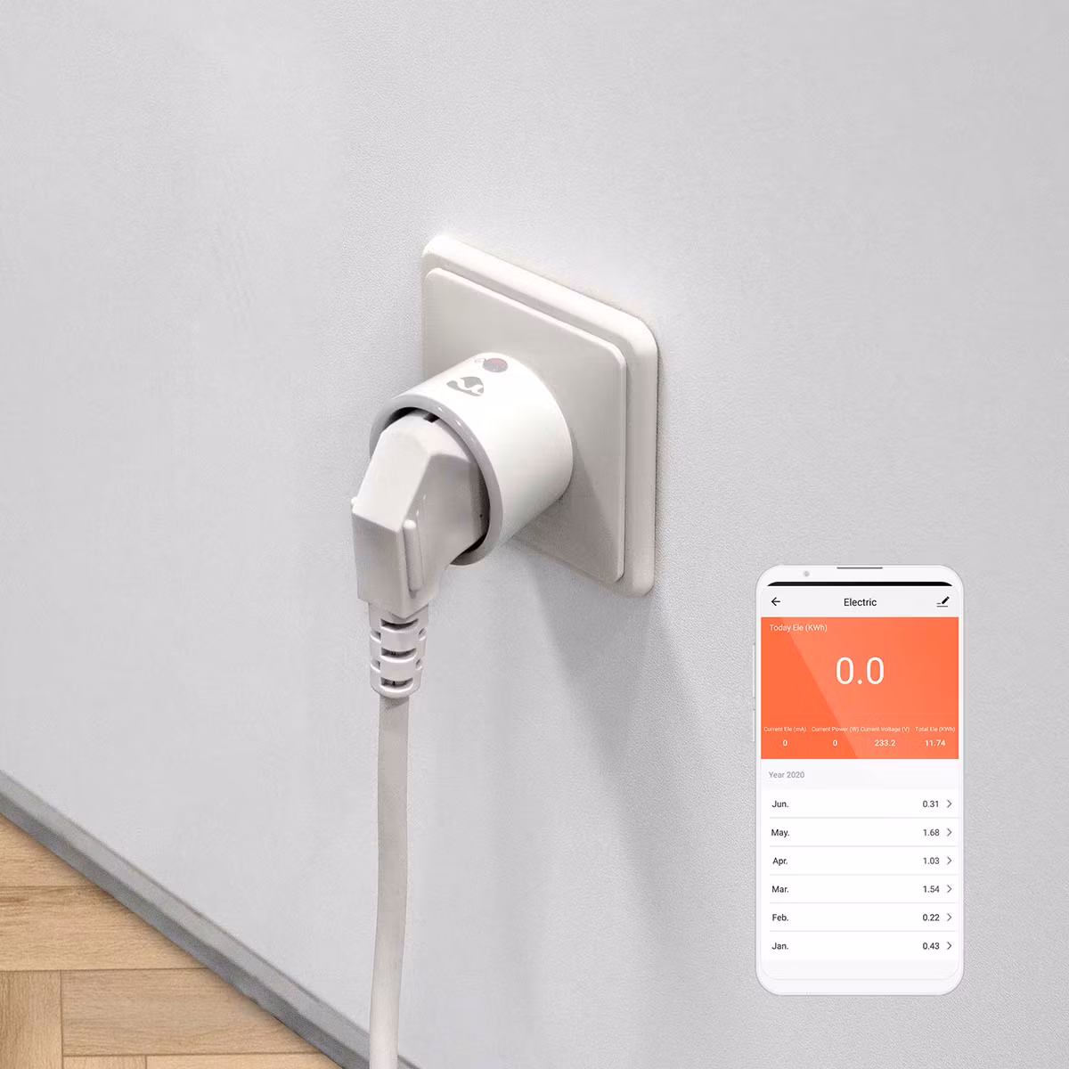 Fjernstyr en rekke elektriske apparater ved å plugge dem inn i denne trådløse smartpluggen og koble dem til en smarttelefon eller et nettbrett via Wi-Fi-ruteren din. Med den praktiske strømmåleren kan du umiddelbart se hvor mye strøm apparatet bruker i dette øyeblikket, eller hvor mye strøm den har brukt over tid.