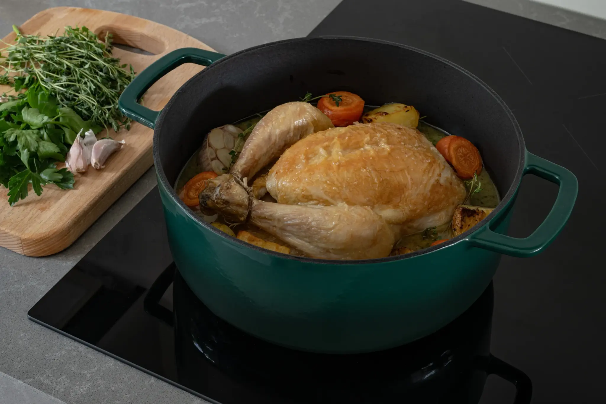 Støpejernsgryte med lokk Ø 24 cm / 3,8 liter (grønn) - et bærekraftig valg i resirkulert støpejern