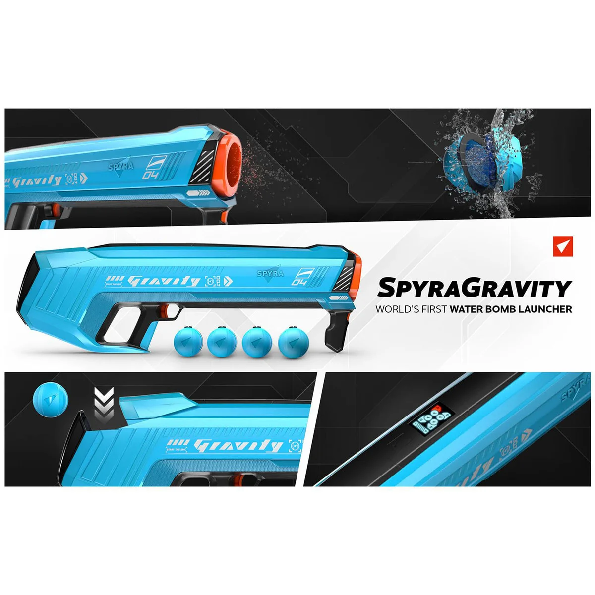 SpyraGravity byr på utrolig kraft og presisjon, slik at du kan avfyre vannbomber med maksimal lovlig kraft. Med en avfyringshastighet på 13 meter per sekund og en rekkevidde på 16 meter kan du dominere enhver vannkamp. Blasteren har plass til opptil fire SpyraBlasts om gangen, og du kan kjøpe ekstra SpyraBlasts for å øke sjansene dine for seier.