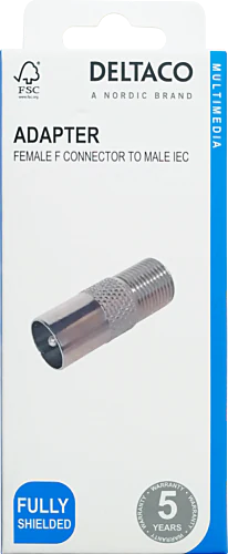 Denne koaksialkabeladapteren med F-hunnkontakt og IEC-hannkontakt er fullstendig skjermet for å minimere signalforstyrrelser. Den har en standardimpedans på 75 Ω og opererer innenfor et frekvensområde på 5-3000 Hz. Kontaktens diameter er Ø 9,5 mm for F-kontakten og Ø 9,52 mm for IEC-kontakten. Den er ideell for forlengelse av antenne- eller koaksialkabler i ulike digitale og analoge oppsett, inkludert radio-, TV- og satellittsystemer.