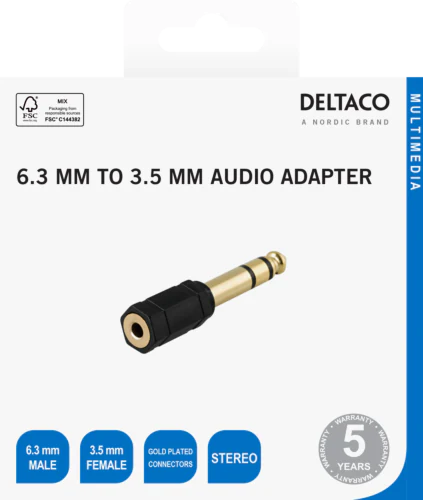 Denne hodetelefonadapteren er designet for å være en brobygger mellom enheter med ulike størrelser på lydkontaktene. Den har en 3,5 mm hunnkontakt i den ene enden og en 6,3 mm hannkontakt i den andre. Den er egnet for å koble hodetelefoner, øreplugger eller andre lydenheter med en standard 3,5 mm-kontakt til lydutstyr som krever en 6,3 mm-inngang, f.eks. profesjonelle lydgrensesnitt, forsterkere, miksere og musikkinstrumenter.