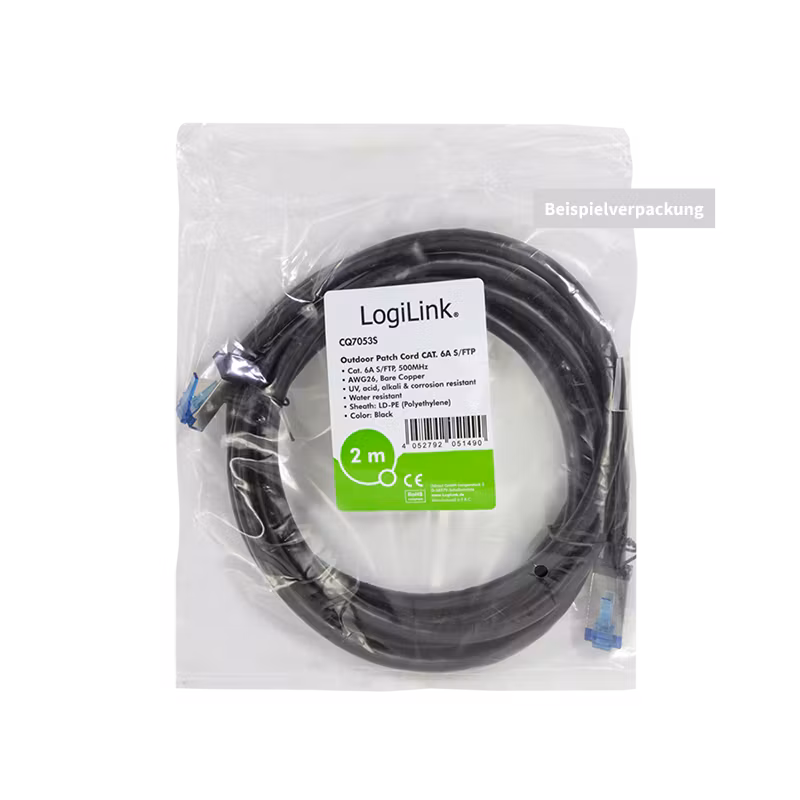 LogiLink utendørs patchkabler er spesielt designet for bruk i ubeskyttede, tøffe miljøer, men er ikke egnet for å legges under jorden. Kabelkappen laget av slitesterk polyetylen (PE) beskytter pålitelig mot værpåvirkninger og UV-stråling. Likevel er kablene fleksible og enkle å legge. I forbindelse med NP0080-patchkabelkontakten fra LogiLink kan vanntette og robuste utendørsforbindelser lages. Ideell for utendørs videoovervåking, for eksempel.