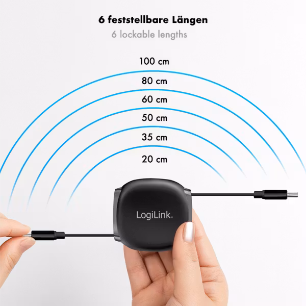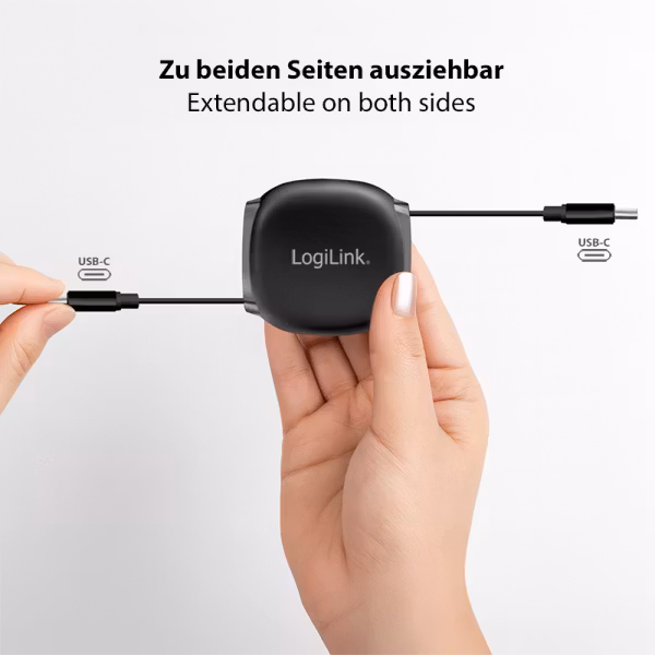 Praktisk og kompakt USB-C-kabel med uttrekkbar design som gjør den enkel å ta med i veske eller sekk. Kabelen har USB-C-kontakter i begge ender og passer perfekt til lading, synkronisering og dataoverføring mellom bærbare PC-er, nettbrett og smarttelefoner.
