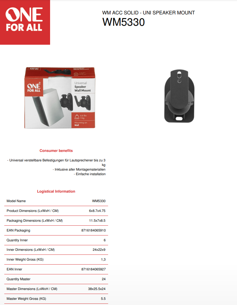 Universal høyttalerfeste for f.eks bakhøyttalere til Samsung (2 stk)