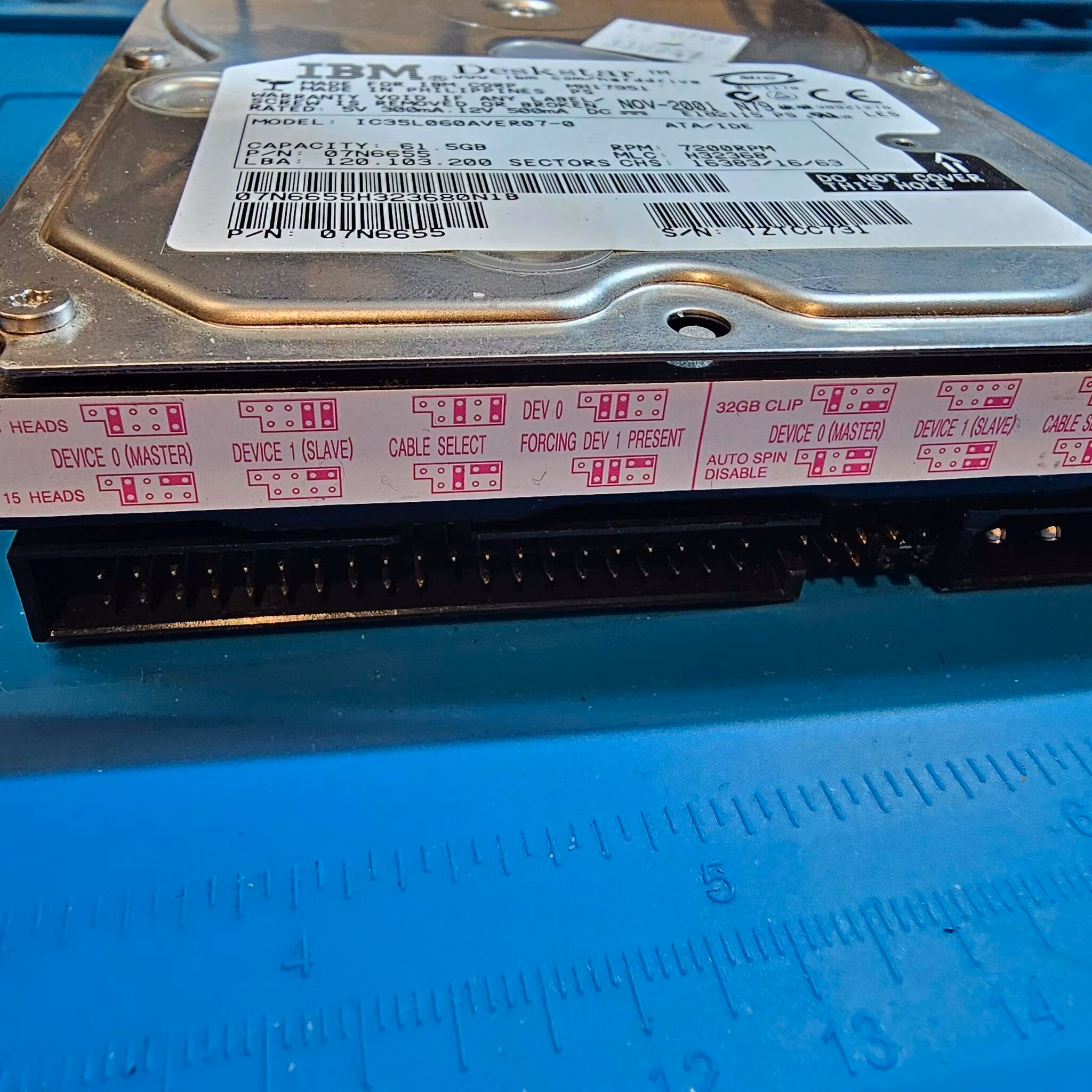 Denne harddisken (IC35L060AVER07-0) er kun tilgjengelig som en DONORDISK for verksted og reparasjonsformål. Enheten spinner men dukker ikke opp i OS. Mulig feil jumpersetting eller feil på kretskort.