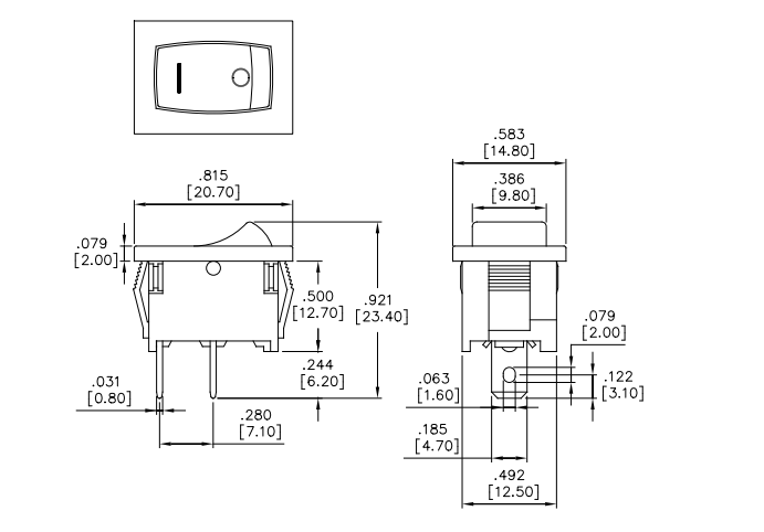 SPECIFICATIONS: Power Rocker Switch MATERIALS: CONTACT RATING: 10A 125VAC 6A 250VAC. CONTACT RESISTANCE: 30m-ohms. INSULATION RESISTANCE: DC 500V 100M-ohms min. DIELECTRIC STRENGTHS: AC 1000V 1 min. HOUSING: 66 Nylon(UL 94V-2). ACTUATOR: 66 Nylon(UL 94V-2). MOVABLE CONTACTS: Copper, silver plated. STATIONARY CONTACTS: Copper, silver plated. TERMINALS: Copper, silver plated. CONTACT SPRING: Piano wire