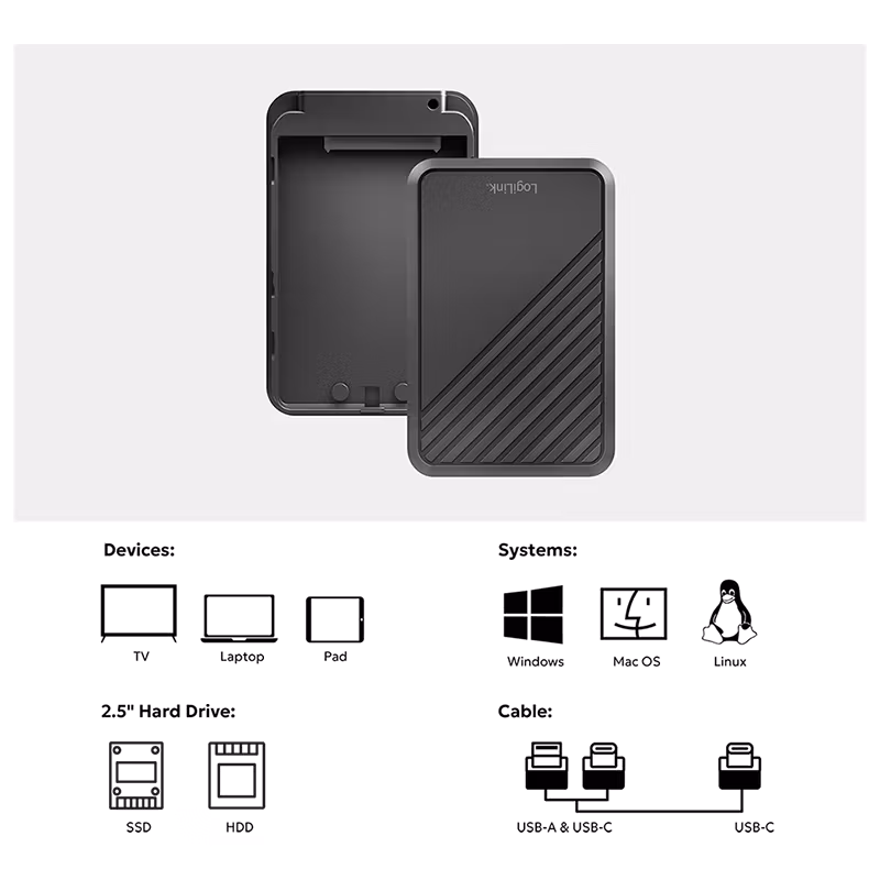 Suitable for 2.5" SATA HDD/SSD