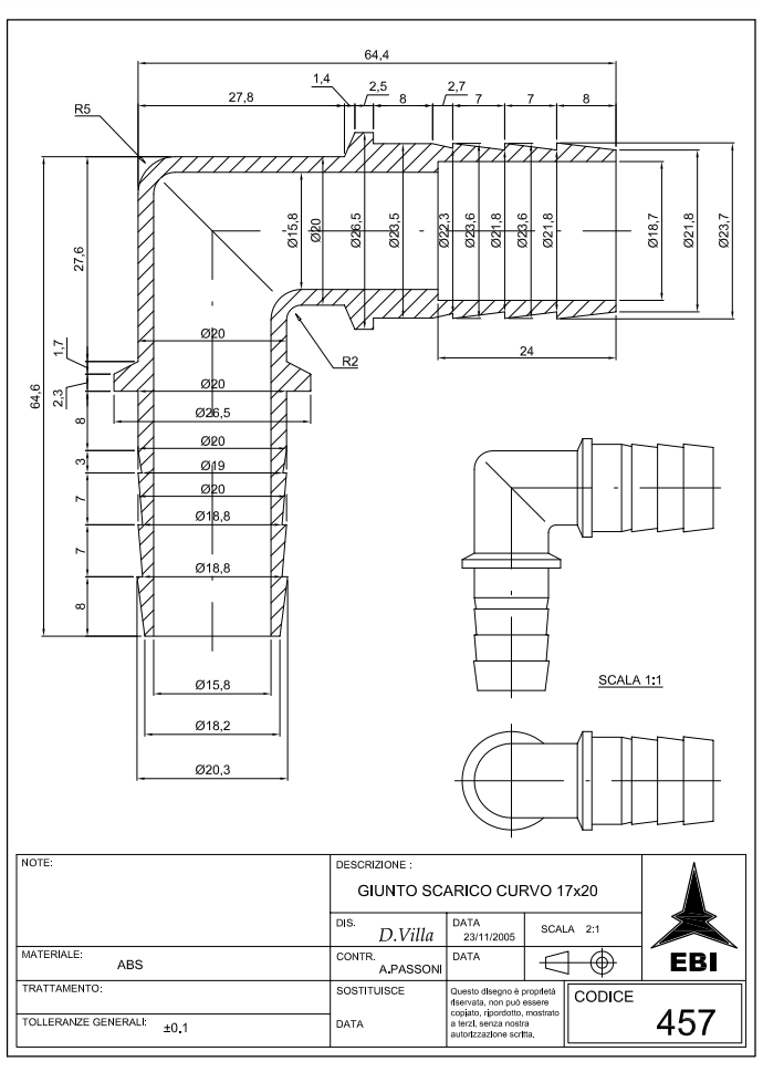 Skøyteadapter for avløpsslange 24mm x 20mm, 90° VINKEL